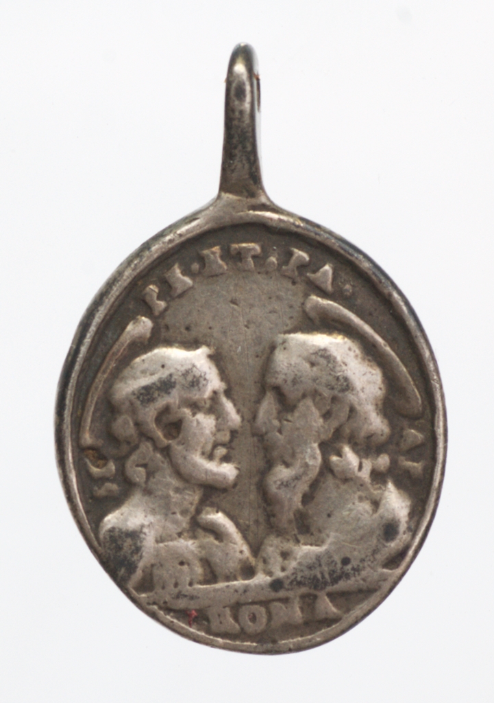 Erősen kopott jubileumi függőérem. Öntött, átfúrt fülön keresztül zsinórra-bőrszálra fűzve, nyakba akasztva viselték. Előlap: Szent Péter és Szent Pál egymással szembenéző profilképe. Hátlap: A négy római bazilika Szent Kapuja - a vatikáni Szent Péter-bazilika; a Santa Maria Maggiore-bazilika; a lateráni Keresztelő Szent János-főszékesegyház, és a Falakon kívüli Szent Pál-bazilika. Fent a sugárkoszorúban, a Szentlelket jelképező, kitárt szárnyú galamb jelenik meg. A figurák elhelyezkedése más, korabeli érmek Szent Lépcsőjáró zarándokainak átvétele.