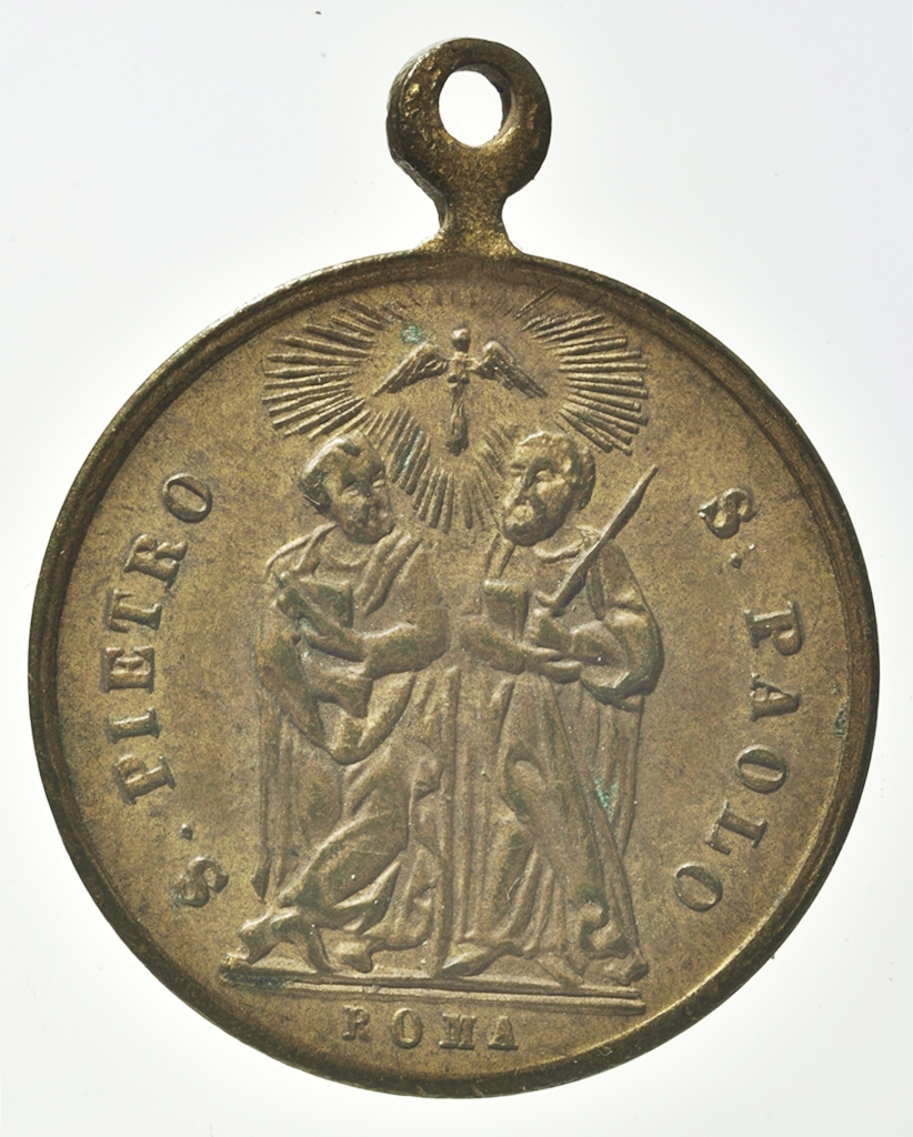 XIII. Leó megválasztására készült zarándok érem. Átfúrt fülön keresztül zsinórra-bőrszálra fűzve, nyakba akasztva viselték. Előlap: a pápa mellszobra bal profilból. Vállán hermelinprém-szegélyes mocétum, stóla, fején pileolus. Felirat magyarul: XIII. Leo pápa megválasztása 1878. február 22-én. Hátlap: Szent Péter és Szent Pál apostolok, attribútumaikkal, felettük sugárkoszorúban, a Szentlelket jelképező galamb. Felirat magyarul: Szent Péter es Szent Pál, Róma