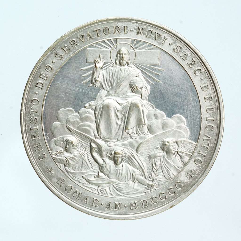 Hátlap: ✠ CHRISTO • DEO • SERVATORI • NOVI • SAEC • DEDICATIO ✠ ROMAE • AN • MDCCCC