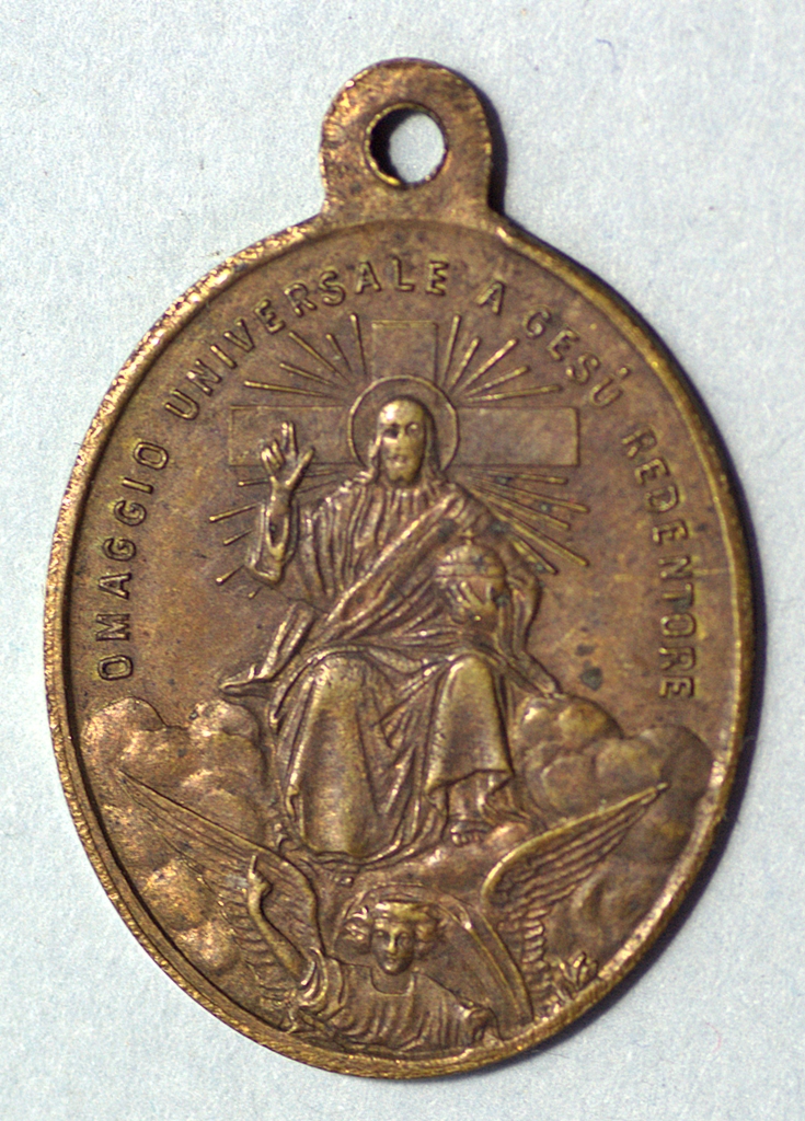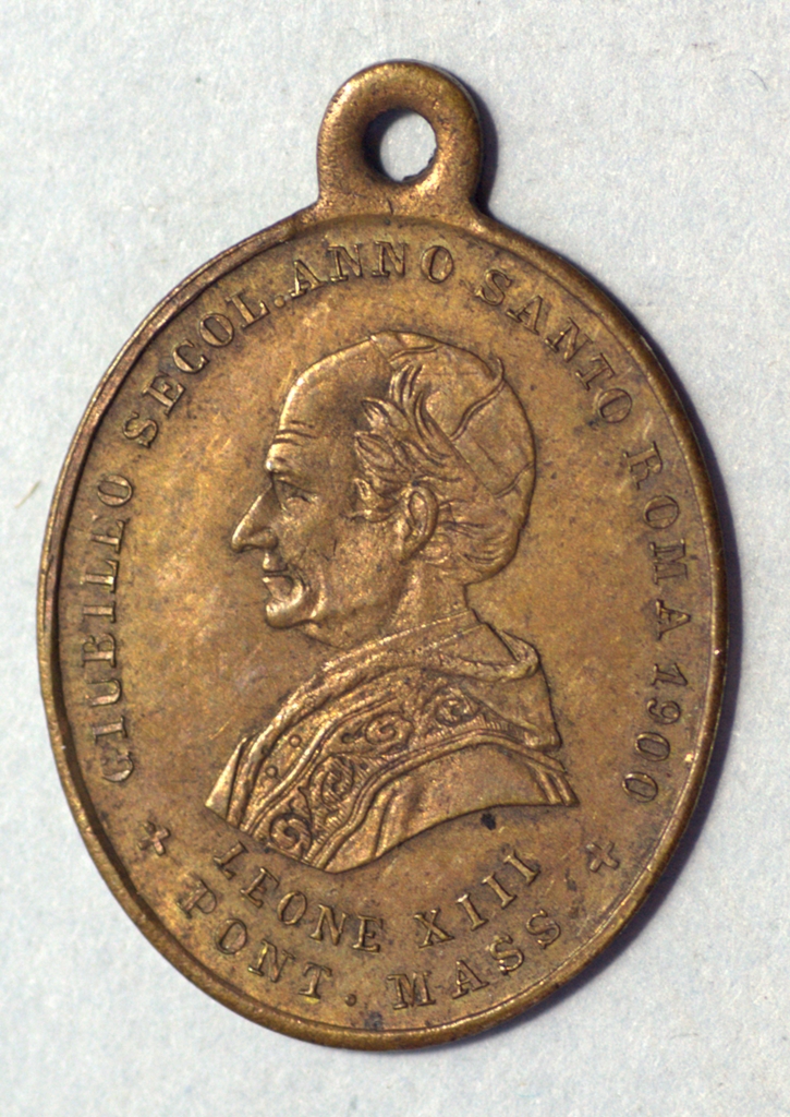 Ovális, lemezből készült, függő zarándokérem, az 1900. évi jubileumi Szentév tiszteletére. Átfúrt fülön keresztül, zsinórra-bőrszálra fűzve, nyakba akasztva viselték. Előlap: a pápa arcképe bal profilból. A felirat az évszázadforduló jubileumát jelöli meg. Vállán hermelinprém-szegélyes mocétum, stóla, fején pileolus. Hátlap: sugárzó kereszt előtt, a felhőkön trónoló Megváltó Krisztus, kezében kereszttel díszített földgolyót (globus cruciger) tart. Lábánál angyal bal kezében babérággal, a jobbal Krisztusra mutat. A felirat a világot kormányzó Megváltó Krisztus egyetemes tiszteletére hív.