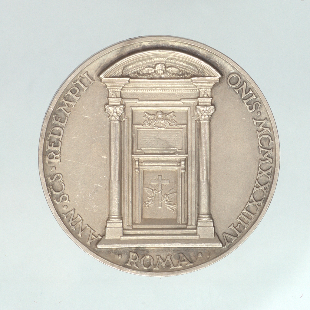 Az Olasz Királyi Pénzverde által, 1933. június 29-én kibocsátott, éves érem a Megváltás Szent Évének emlékére. Előlap: a pápa portréja, bal profilból, vállán palást, fején pileolus. Hátlap: a Szent Kapu, sugárkoszorúval körülvett, latin kereszttel, amit angyalok tartanak. Az architrávon a pápai jelképek: a kettős kulcs és a tiara, alattuk a zarándokok jelképe, a Szent Jakab-kagyló. Az ívelt zárású timpanonban szárnyas angyalfej.