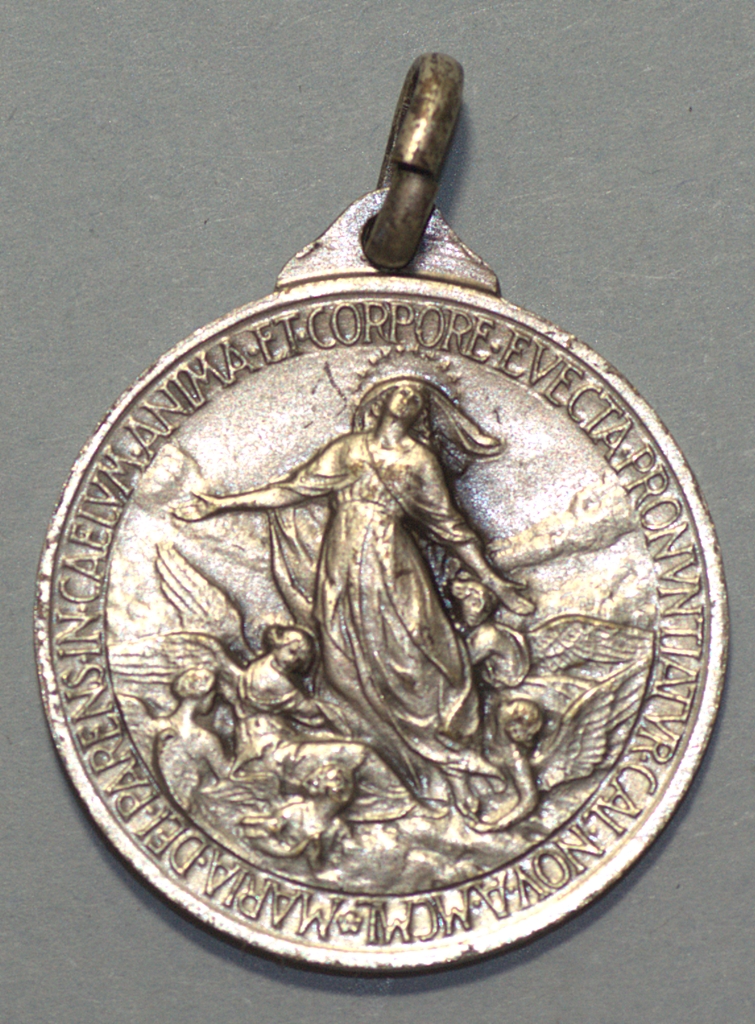 Szentévi érem. Az Olasz Pénzverde 1850-ben bocsátotta ki a Szűz Mária mennbevételéről szóló dogma kimondása alkalmából.k Előlap: A pápa portréja, bal profilból, vállán palást, fején pileolus. Felirata magyarul: XII. Piusz pápa az 1950-es jubileum évében Hátlap: Boldogságos Szűz Máriát az angyalok emelik fel a felhők között a mennybe. Latin körirat magyarul: Kimondattot, hogy Mária az Isten szülője testestül és lelkestül felvétetett a mennybe.