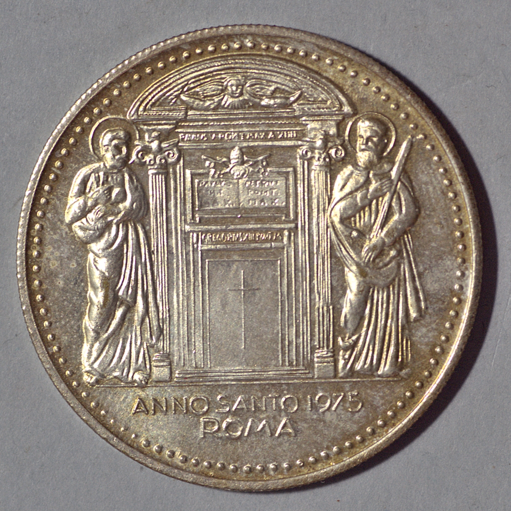 Alkalmi emlékérem a jubileumi év megnyitására. Előlap: gyöngysoros keretben a pápa mellképe jobb profilból. Vállán palást, fején tiara, imára illesztett kézzel. Hátlap: gyöngysoros keretben a zárt Szent Kapu, középen latin kereszt, kétoldalt Szent Péter és Szent Pál apostolok egészalakos szobrai, attributumaikkal. A kaput csigás-volutával zárt oszlopok keretezik, felette vésett táblák: "PAVLVS|PONT|MAX." és "PETRVS|PONT.|MAX." --ellentétes elhelyezéssel, felette a pápai jelképek: kettős kulcs és a tiara. Timpanonban szárnyas angyalfej.