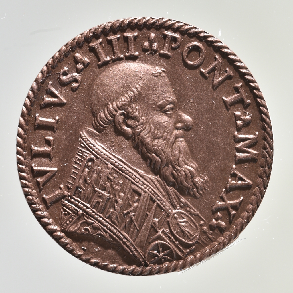 Hátlap: IVLIVS • TERTIVS • PONT • OPT • MAX |Kapumezőben: ANNO | IVBI | LEI |Szelvényben: • ROMA •
