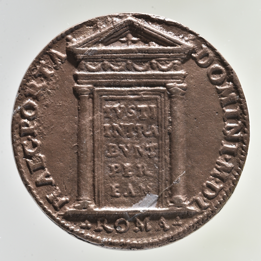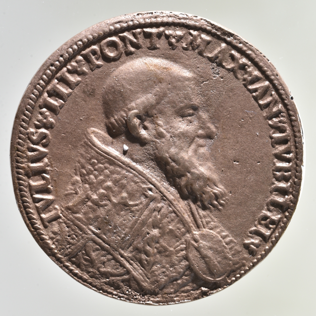 A Szent Kapu 1550. évi megnyitási szertartására készült, eredeti érem. III. Pál pápa 1549. május 20-án hirdette meg a 10. Szentévet, azonban november 10-én, így az folytatás utódjára, III. Gyula pápára hárult. A koronázása 1550. február 22-én történt, és a Si pastores ovium bulla kihirdetésével megnyitották a Szent Kapukat. Előlap: sodronymintás gyűrűben a pápa arcképe jobb profilból. Vállán palást, a Szent Kapu bontásának képével. A csaton Iustitia alakja. Hátlap: sodronymintás gyűrűben a Szent Kapu pillérei, timpanonban a Szentlélek galambja. Az architrávban levél-füzérek között figurális ábrázolások. A felirat a 118. Zsoltárt idézi: "Ez az Úr kapuja: igazak mehetnek be rajta"