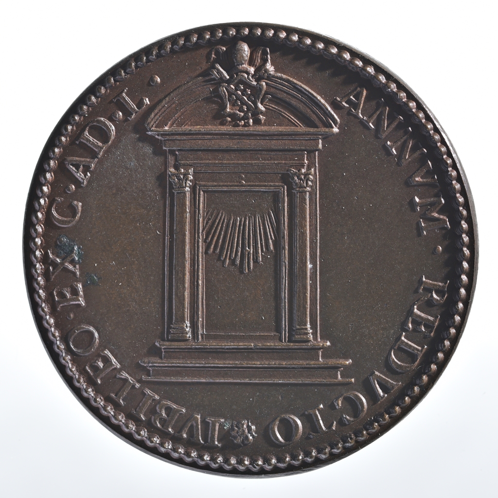 Utólag készített ún. restitúciós érem a szentév bezárásáról. Része annak az érem sorozatnak, amelyet Ferdinando De Saint-Urbain készített Rómában a 18. század elején. Előlap: a pápa jobb profilú mellképe, gyöngysoros keretben. Hátlap: gyöngysoros keretben a nyitott Szent Kapu, fentről induló fénysugarakkal, a timpanonban pápai címer látható.