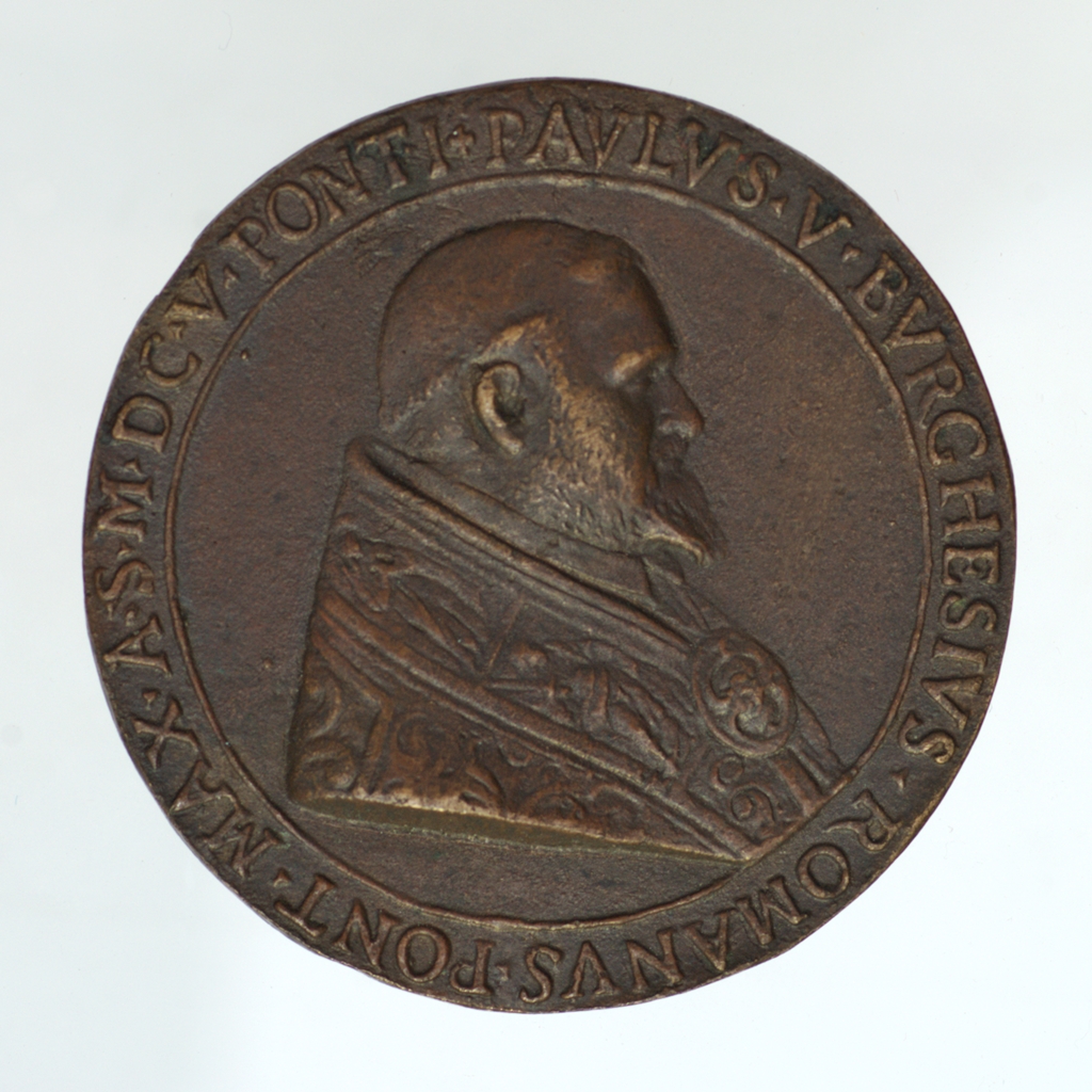 Előlap: + PAVLVS • V • BVRGHESIVS • ROMANUS • PONT • MAX • A • S • M • DC • V • PONT • I