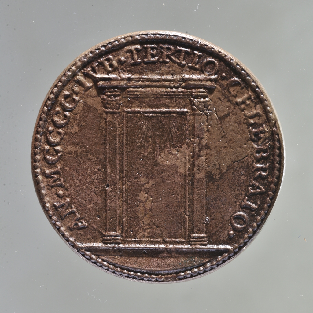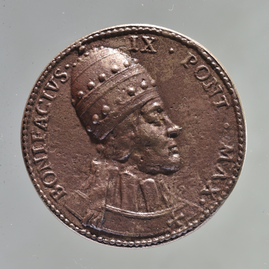 Utólag kiadott, ún. restitúciós érem IX. Bonifác pápa idejében, 1400-ban megtartott harmadik rendes szentév megünneplésére emlékezve. Előlap: gyöngysoros keretben a pápa jobb profilú mellképe. Hátlap: gyöngysoros keretben a zárt Szent Kapu, fentről a térbe áradó fénysugarakkal.
