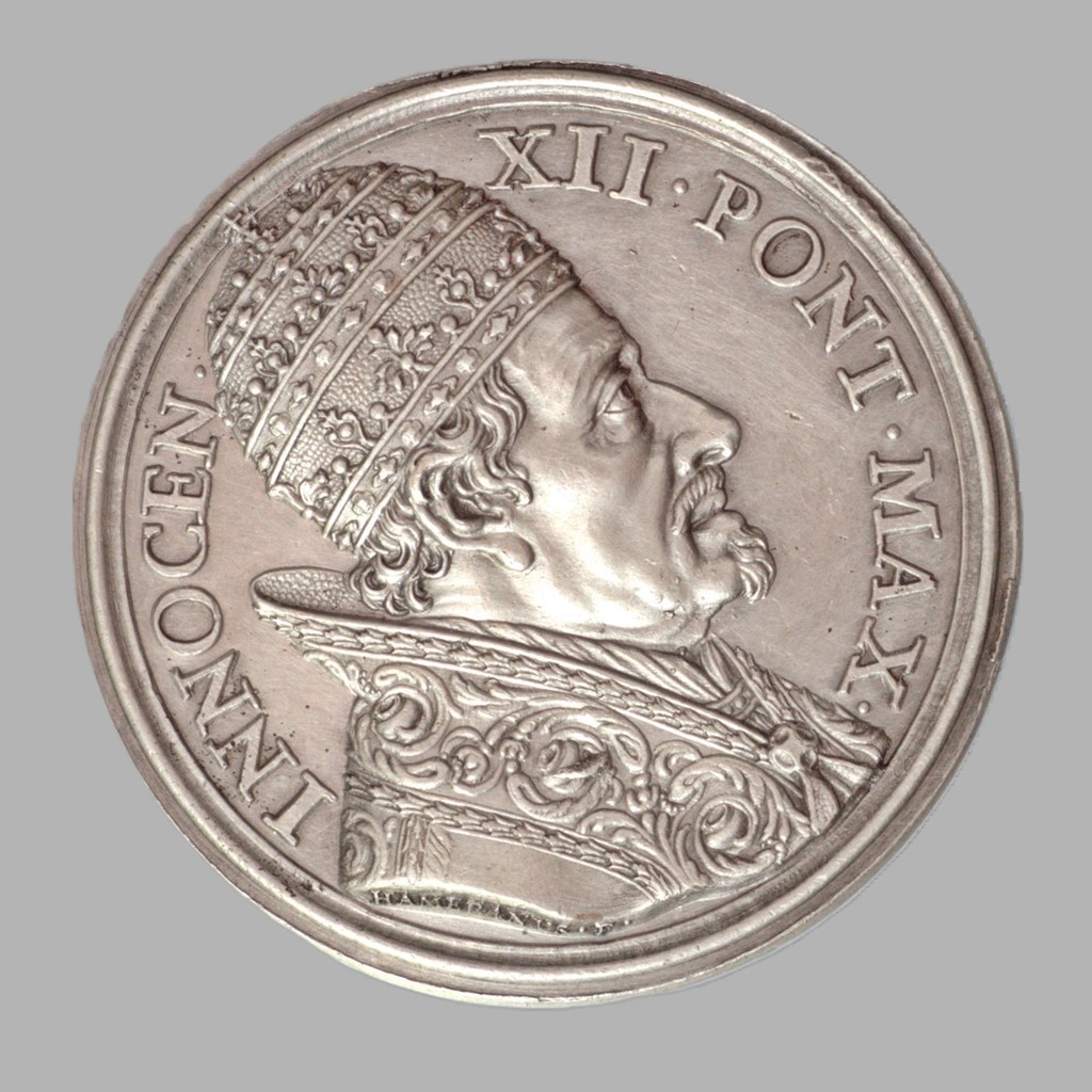 Szent Év megnyitásának emlékére készült érem. XII. Ince 1699. május 18-án, a Regi saeculorum kezdetű bullájával hirdette meg a jubileumi évet, de gyenge egészségi állapota miatt, a Szentévek történetében első ízben, nem maga a pápa végezte a megnyitás ünnepélyes szertartását. Előlap: a pápa jobb profilú arcképe, fején tiara. Hátlap: a pápa, a főpapság kíséretében kibontja a Szent Kaput elzáró téglafalat. Jobbról térdelő zarándokok, balról püspöki asszisztencia, térdelő diakónus emeli a pápa palástját, háttérben a Svájci Gárda alabárdosai, a kapu felett angyalok. Közöttük fénysugár árad a bazilika belső terébe, egyikük a szalag feliratára mutat. A felirat magyarul: Isten háza a menny kapuja (1 Móz 28, 17).